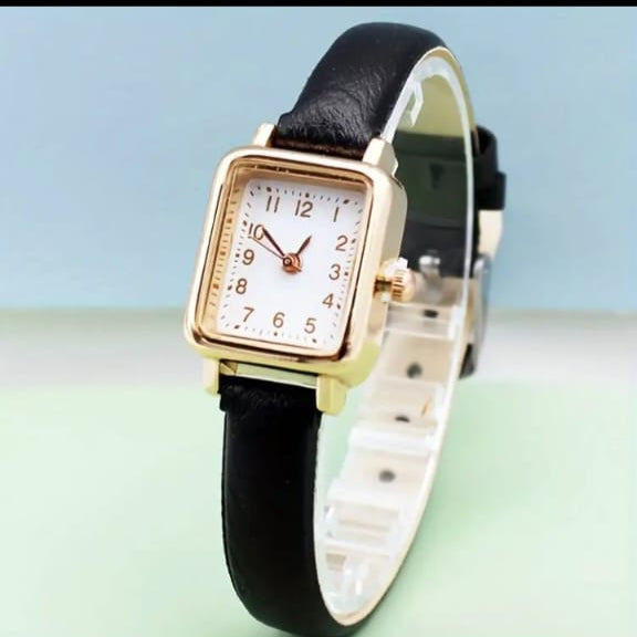 Expertly crafted with a sleek gold square dial, a black strip for a touch of sophistication, and a white dial base, this ladies' watch combines style and practicality. Stay on time and elevate your look with this elegant timepiece.