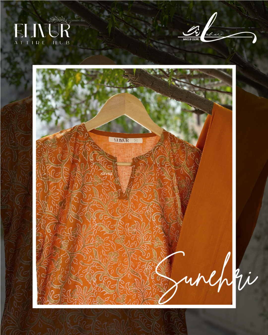 The beauty of handmade—our Mid-Summer collection, ‘Leher-e-Rang – Waves of Colors’, celebrates the soulful craftsmanship behind each piece. 'Leher e Rang' is a tribute to the “Hands that Create,” honoring the artisans who breathe life into every design. Crafted in soft lawn cotton by combining the traditional essence with contemporary designs and shades, this elegant two-piece ensemble brings together effortless grace, intricate detail, and the timeless charm of traditional artistry.